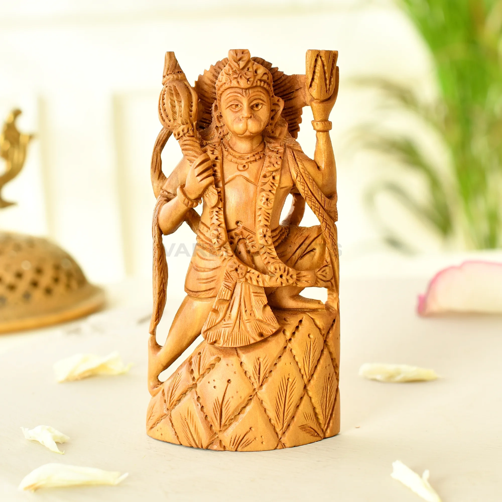Hand-Carved Detailing: The Hanuman idol is intricately hand-carved to reflect Hanuman’s divine form and expression.